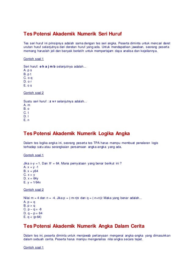 Contoh Soal Tpa Deret Angka Dan Huruf Contoh Soal Tes