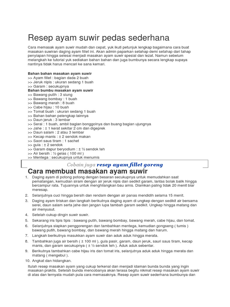 Resep Ayam Suwir For Android Apk Download