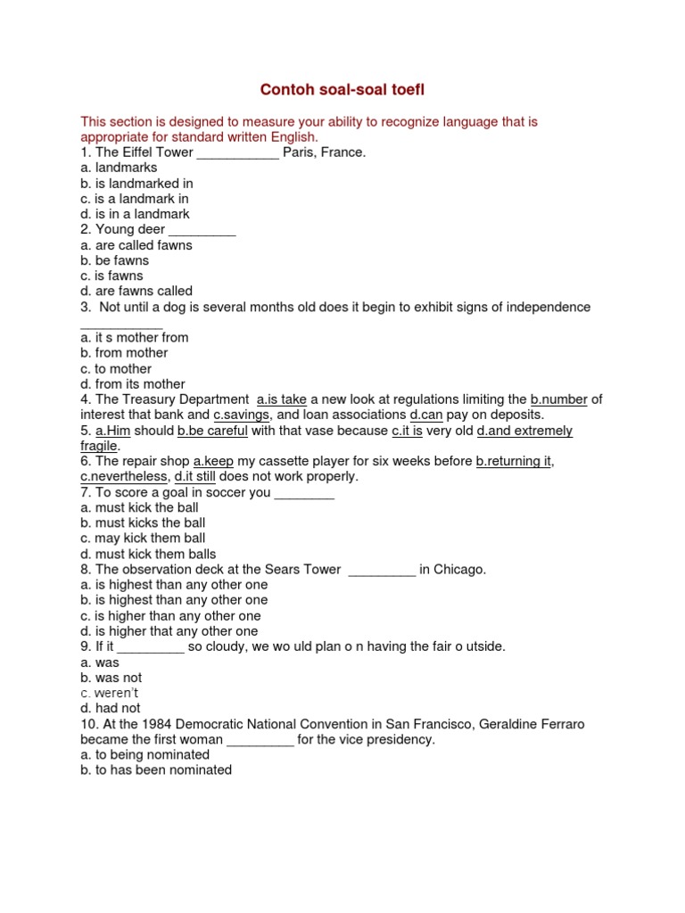 Contoh Soal Toefl Structure Lengkap Dengan Kunci Jawaban