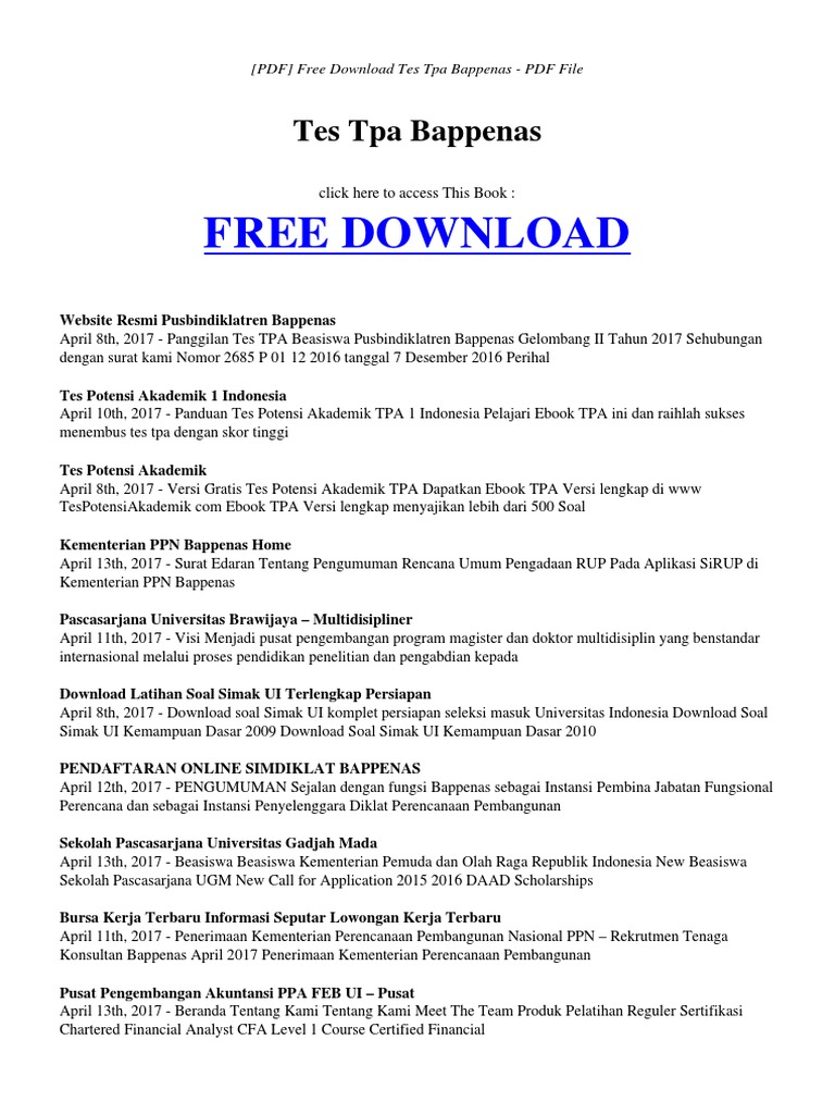 Free Download Program Contoh Soal Tpa Bappenas S2 Pdf Files