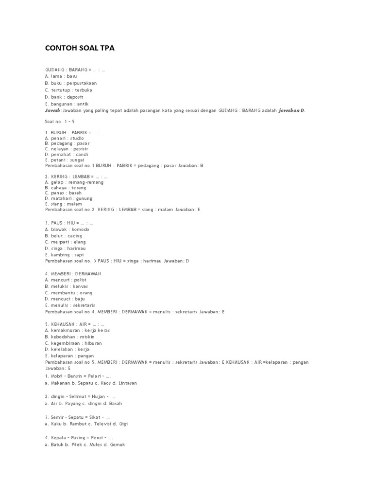 Contoh Soal Tes Verbal Potensi Akademik Dan Kunci Jawaban
