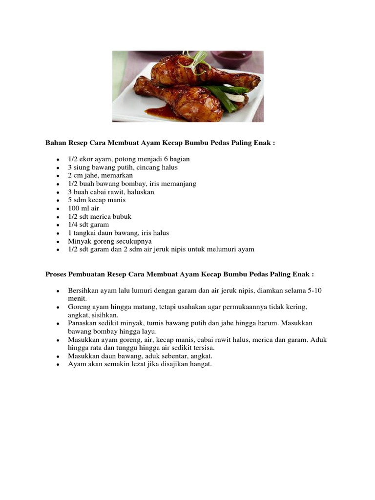 Bahan Resep Cara Membuat Ayam Kecap Bumbu Pedas Paling Enak