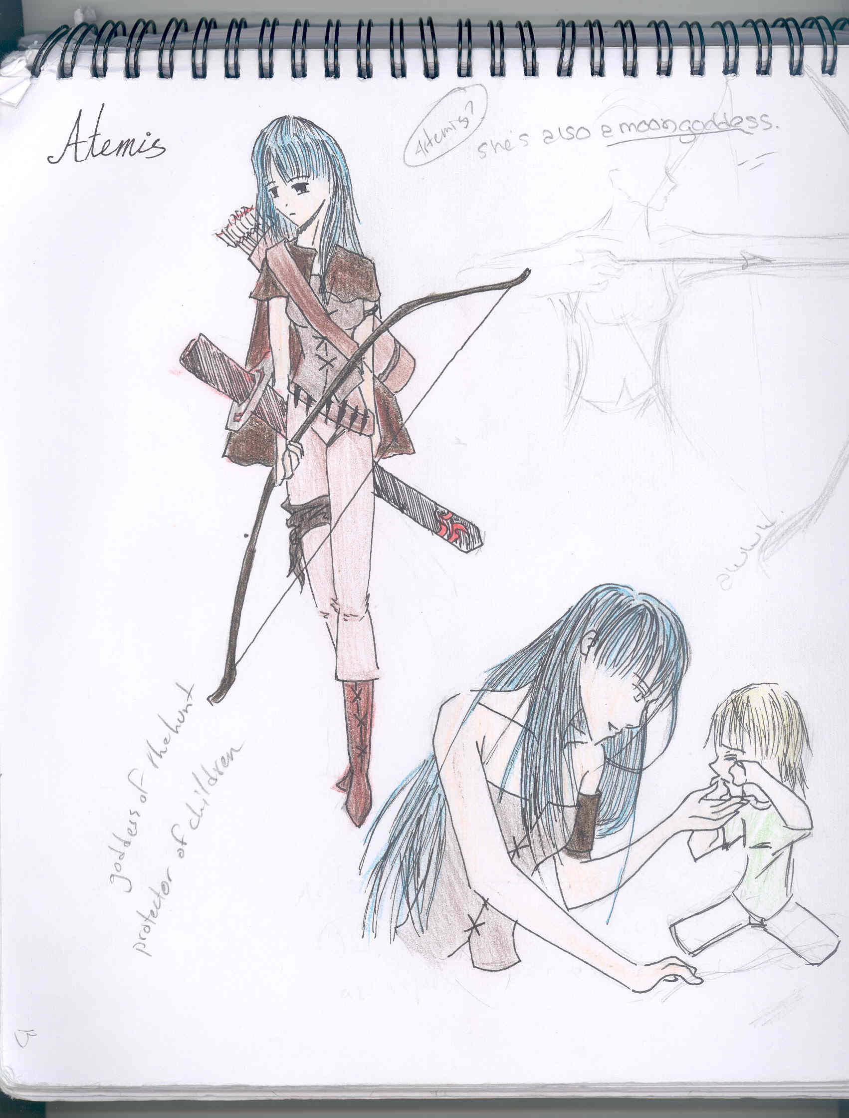 Artemis Goddesses Of The Hunt Anime Sketch By